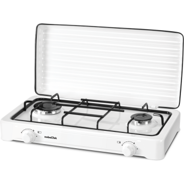Plita exterior NobeLTek NLT PE2GA, Gaz, 2 arzatoare, Gratar emailat, fara siguranta, Diuze GPL, Capac emailat (Alb)