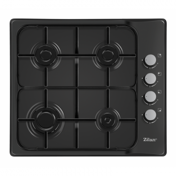 Plita incorporabila Zilan ZLN-0034, 7.35 kW, 4 arzatoare, Gaz natural sau GPL, Negru