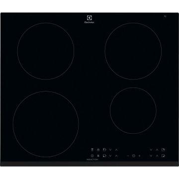 Plita incorporabila Electrolux LIL61434C, Inductie, 4 zone de gatit, Control touch, Detectare vase, Blocare de siguranta pentru copii, Conectare plita-hota, 60 cm, Negru